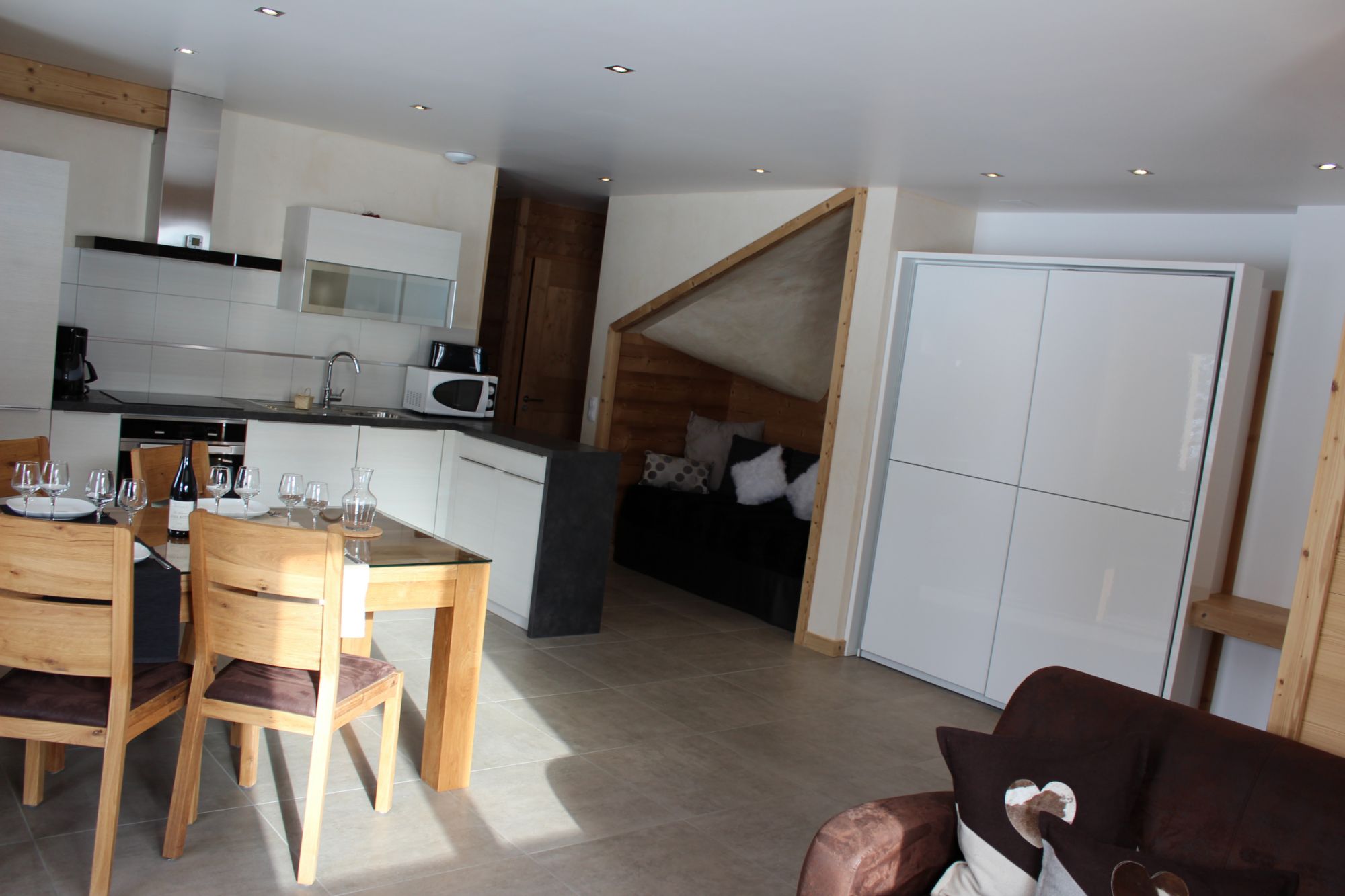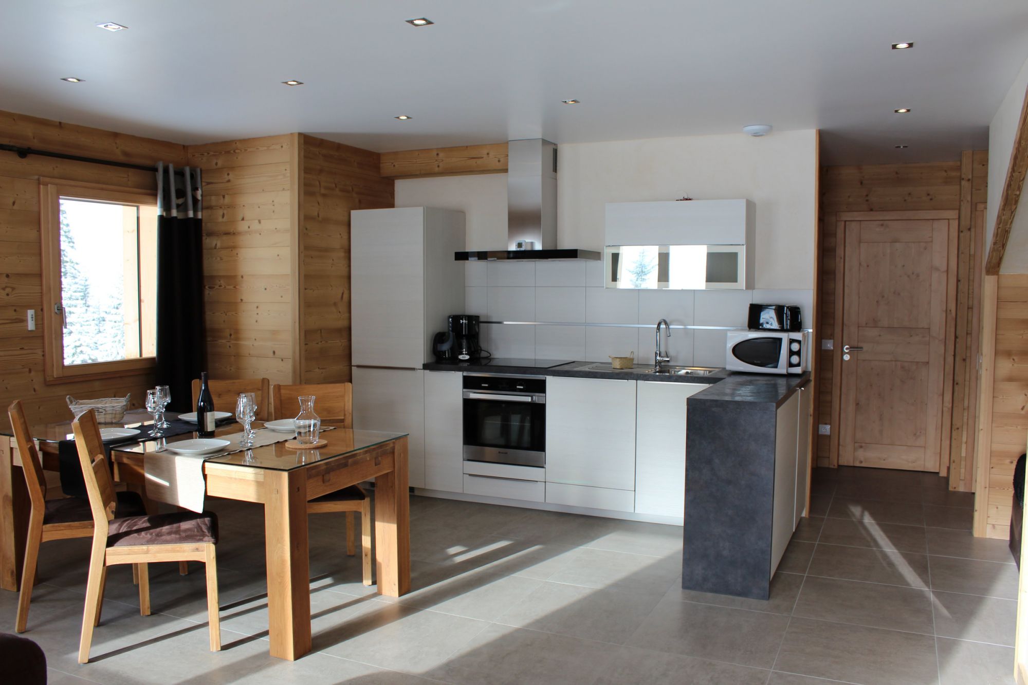 This 85m² gite is set on the garden level of the owners' chalet, with a blend of wood and modernity and high-quality materials and features . Separate entrance (access by outside stairs from the car park). Kitchen opening onto living room: TV 102cm, sofa, 1 bed 90 in alcove, access to the terrace with panoramic view of the mountains... 2 bedrooms: bedroom 1 (1 double bed 160x200cm), bedroom 2 (2 twin beds 90x200cm), 1 bathroom ( whirlpool bath) and 1 shower room (shower, WC), 1 separate WC, laundry room next to the gîte (washing machine and tumble dryer, ski and bike storage). Bed linen and towels provided. Terrace with garden furniture, barbecue. Car park. Unlimited access to the wellness area with indoor pool at the owners' hotel-restaurant next to the chalet (subject to opening dates and times). Activities: Skiing (La Croix Fry-Merdassier linked to the La Clusaz ski area) on site, Lake Annecy, beaches 27km, Annecy 33km. Numerous summer/winter walks starting from the chalet.