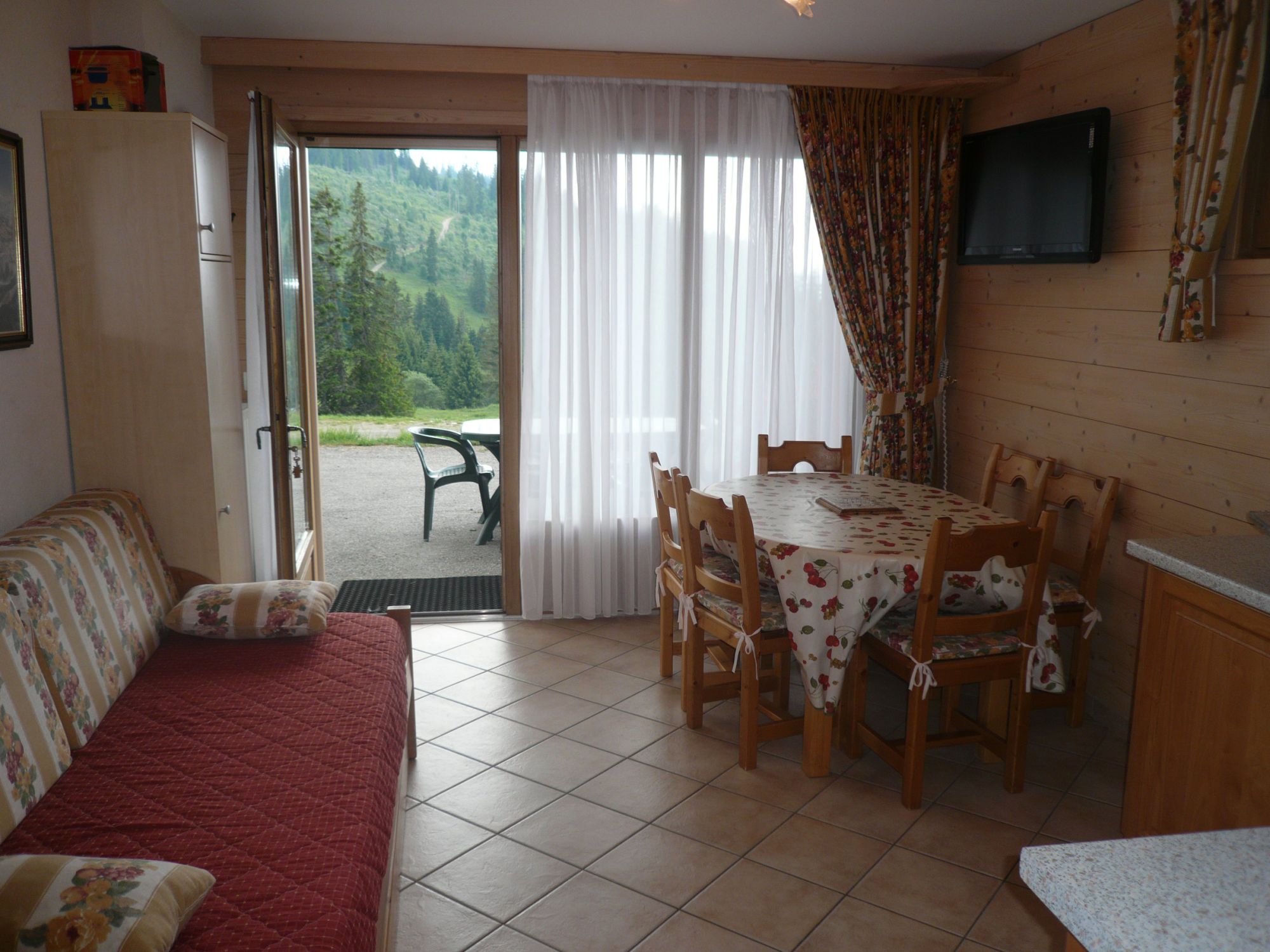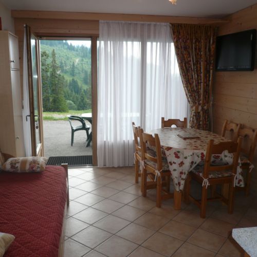 Facing the magnificent panorama of La Tournette and the Aravis mountain range, our chalet is just 50 m from the slopes. 55 m2 gîte on ground floor: fitted kitchen/living room (sofa bed: 2x90 cm), Bedroom 1 (1 bed 140), Bedroom 2 (2 twin beds 90). Shower room, WC. Ski storage on terrace. Central heating. Access to the hotel's indoor swimming pool (depending on opening dates and times) owned by the owners opposite the chalet. Summer: tennis court 3 km away. Numerous walks starting from the gîte.